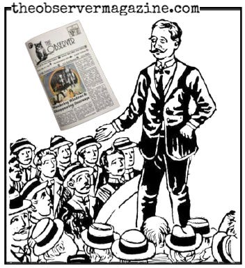 Per our long-standing editorial policy, we shamelessly pressed copies of THE OBSERVER into the hands of anyone standing nearby before leaving the library basement (why is it always the basement?).