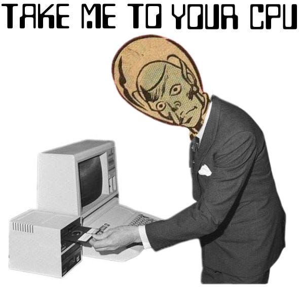So, let’s imagine ET-AI has arrived. It presents itself and commands “take me to your CPU.” Then, it begins its dance with the central processing units that help steer earth manufactured AI (earth-AI). Here are some scenarios.