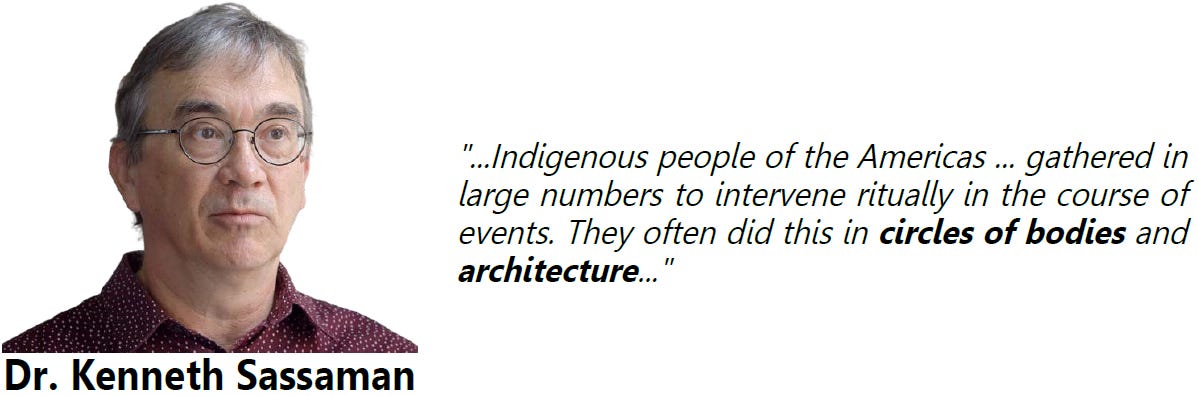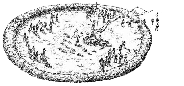The circular layout created a natural gathering place in the center. According to Dr. Sanger, this layout imbued the central plaza with supernatural power: “The formation of powerful center points is also a means by which many Native American groups likewise created ‘portals;’ points where time, space, and social distance between human and non-humans can be folded, collapsed, extended, traversed, or otherwise manipulated.”5